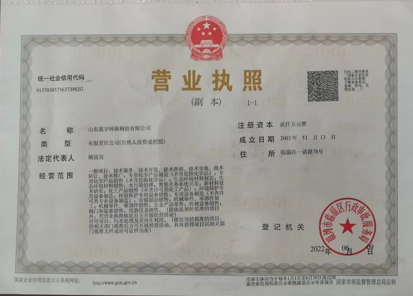 山東藍宇環??萍加邢薰镜靥帤v史悠久的齊國故都、世界足球的發源地-臨淄。他北鄰濟青高鐵和濟青高速公路,坐落于著名的石化基地-齊魯石化內,是集循環水、反滲透、污水處理、氨氮去除劑、除垢劑、工業清洗劑、煉油助劑等多種助劑研究、開發、生產、銷售、資訊服務及設施運營服務于一體的節能環保科技企業。